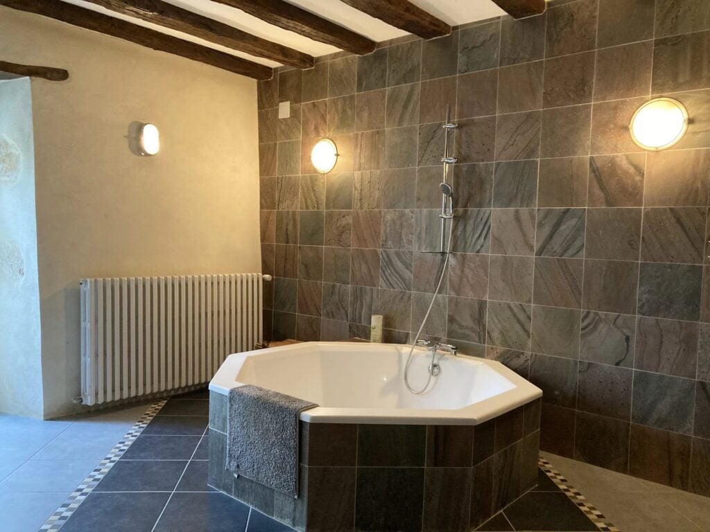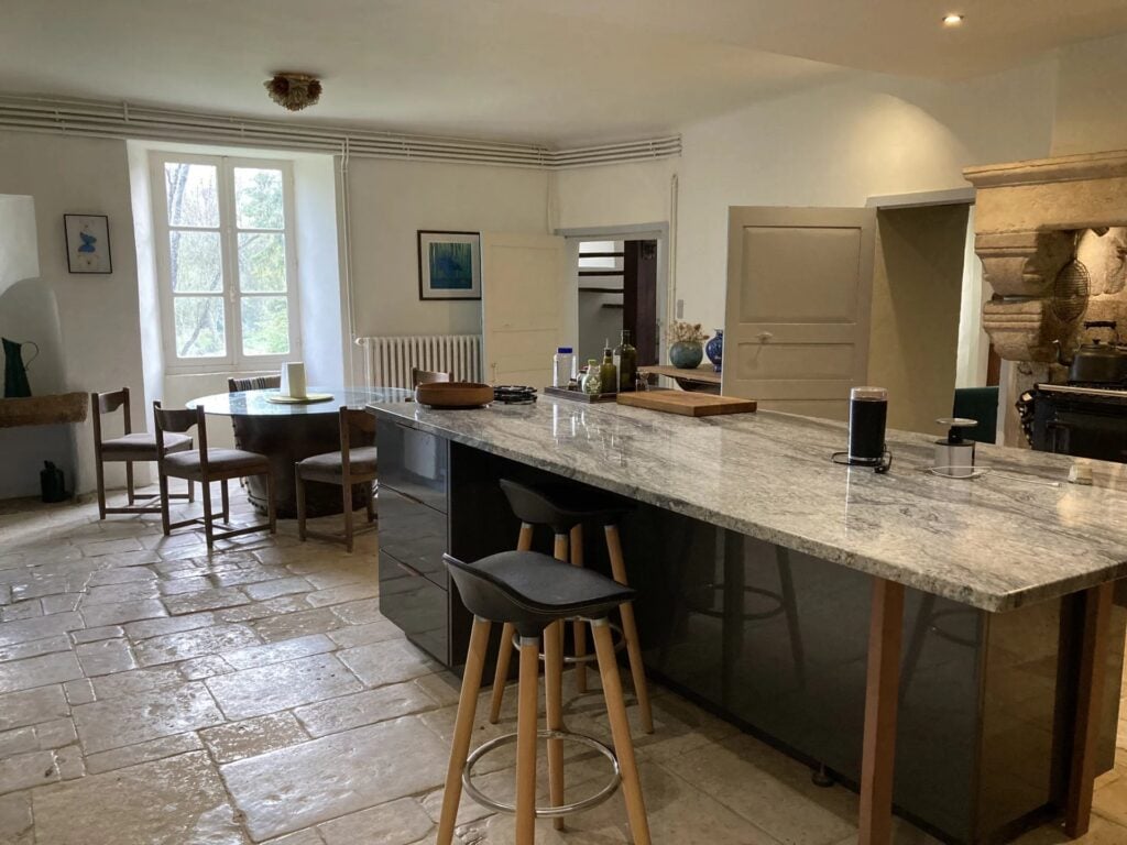 Gebouwd in de 15e eeuw en aanzienlijk heringericht in de 19e (elegante noordgevel), biedt dit grote stenen pand 860 m2 woonruimte en bestaat uit: