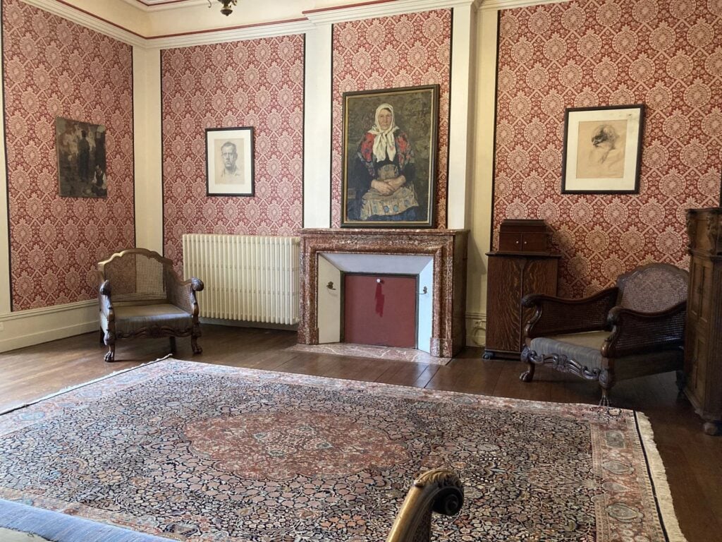 – Eerste verdieping: 4 grote slaapkamers met aangrenzende badkamers, grote salon, muziekkamer, WC. Trap naar bovenverdieping en begane grond.