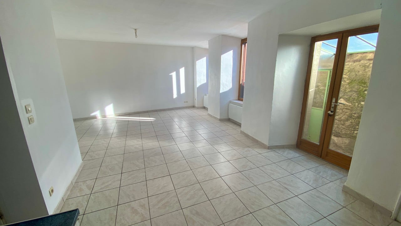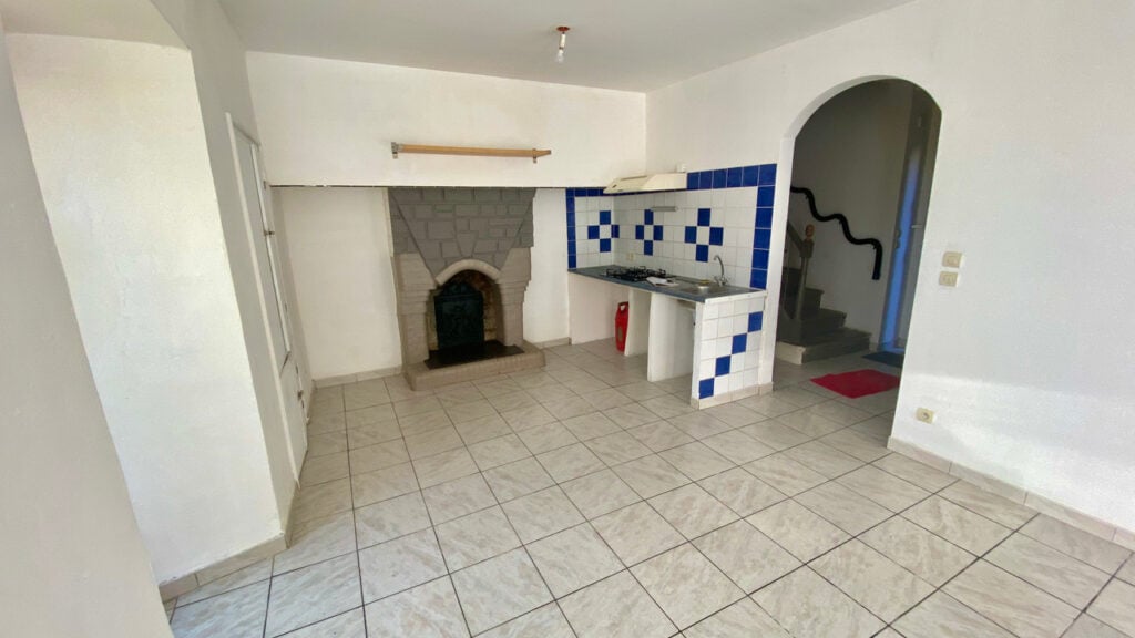De open leefruimte heeft een eenvoudige keuken en open haard, met een enorme leefruimte (40m2) om in te delen, passend bij uw levensstijl