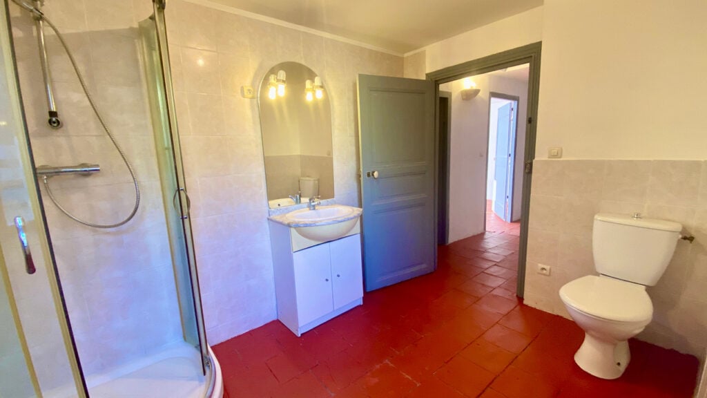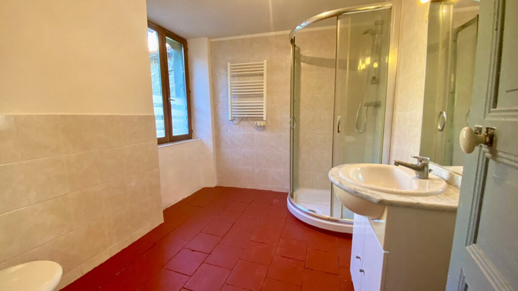 Op de eerste verdieping zijn 2 slaapkamers en een doucheruimte met toilet en wastafel