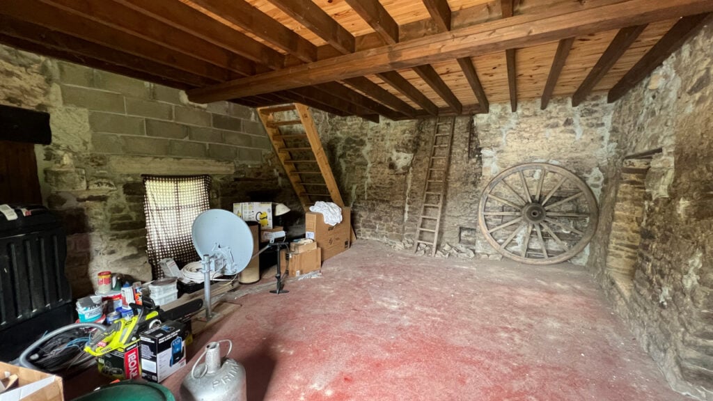 A24065VIC14 – Een kant van de halfvrijstaande woningen is al gerenoveerd, met een woonruimte op de begane grond met een granieten schouw en 3 slaapkamers op de eerste en tweede verdieping. De resterende “tweede” woning moet volledig gerenoveerd worden. Er is ook een grote stenen halfvrijstaande garage aan de andere kant van het laantje.