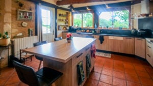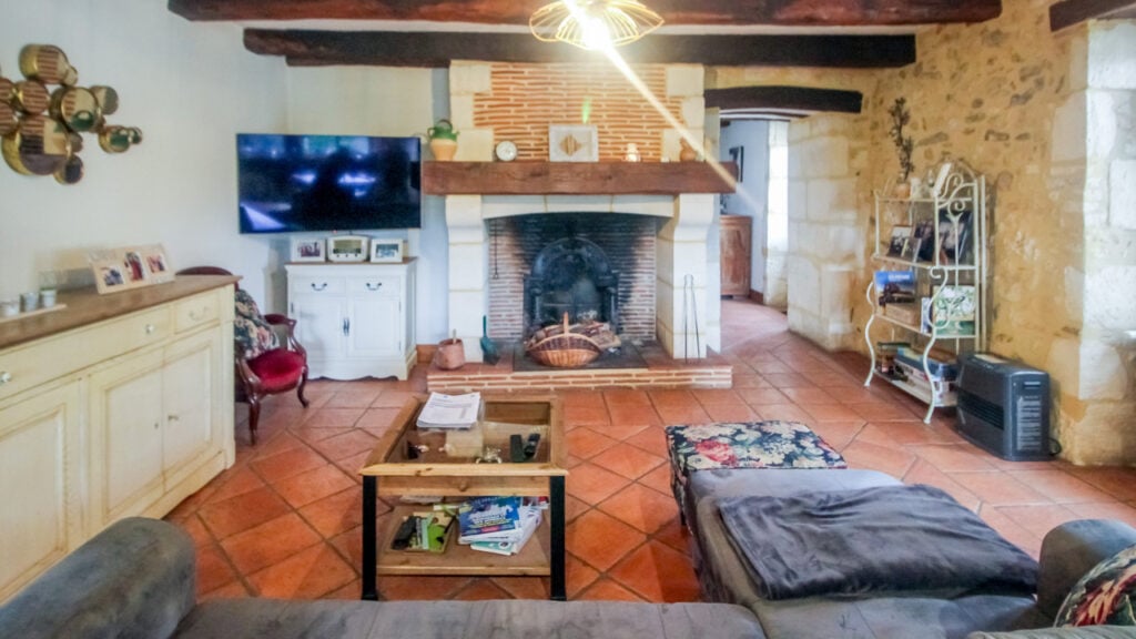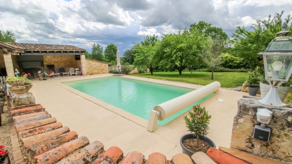 Het tweede gebouw is een grote schuur verdeeld in werkplaats, garage, studio en zomerkeuken, grenzend aan het verwarmde zoutwater zwembad (10×5) met nieuwe liner en overdekt terras.
