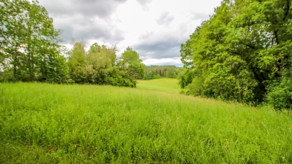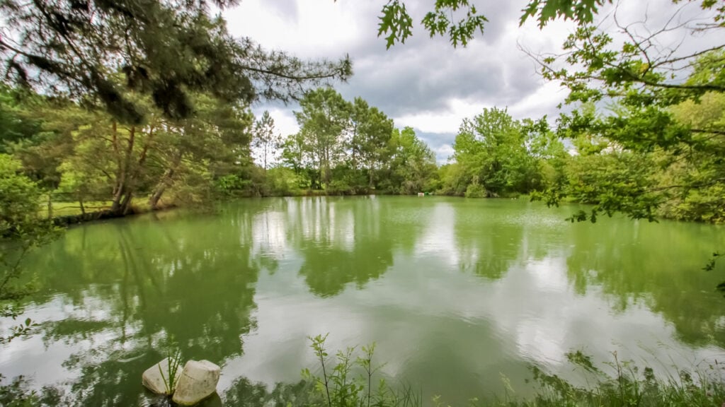 Het terrein strekt zich uit tot 11 hectare weiden en bossen met twee vijvers die gevoed worden door bronnen.