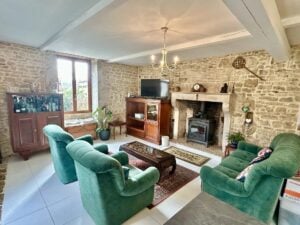 Dit charmante karakteristieke huis combineert traditionele aantrekkingskracht met modern comfort en een warme, gastvrije sfeer. De belangrijkste woonkamer is licht en ruim, met zichtbare stenen muren en houten balken, waardoor authenticiteit samengaat met alledaags comfort. De kamer is perfect voor het gezinsleven of voor entertainment en heeft een houtkachel, ideaal voor gezellige winteravonden.