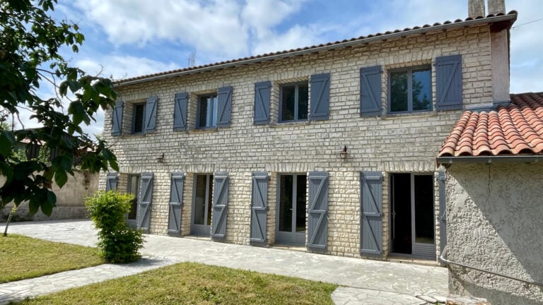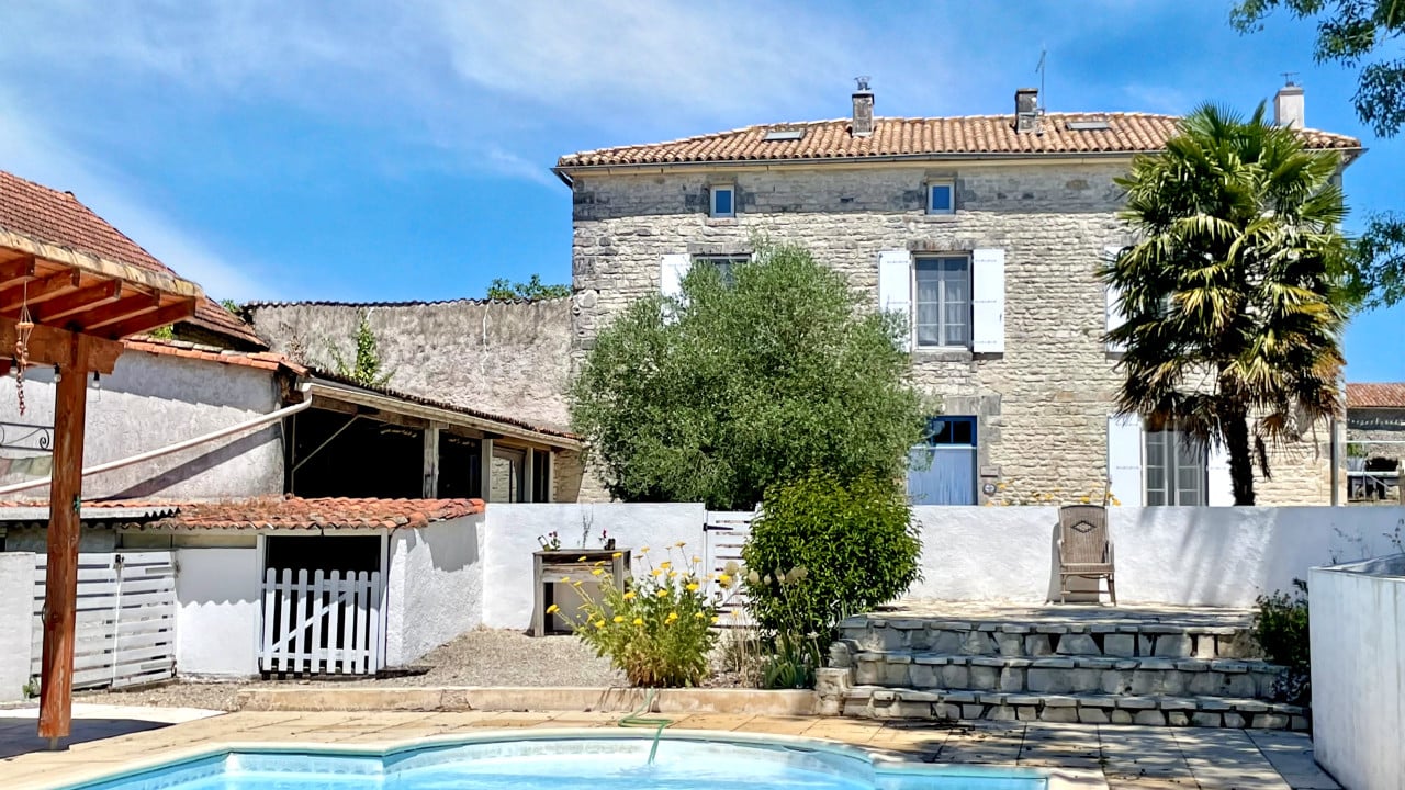 A37115VC16 – Aan de rand van het dorp, en op loopafstand van de plaatselijke winkels, is dit huis een perfect huis of vakantieverblijf met grote kamers, hoge plafonds en zwembad. Dichtstbijzijnde marktplaats is Aigre, 16140, Charente.