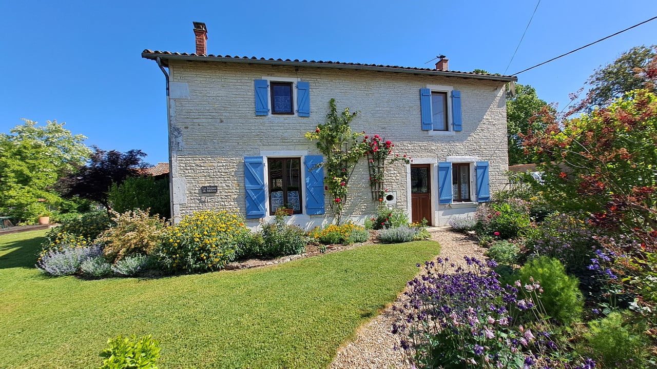 A13772 – In een rustig landelijk dorpje in het zuiden van de Deux-Sèvres, vlakbij de grens met het departement Charente Matitime, ligt dit mooie vrijstaande stenen huis.