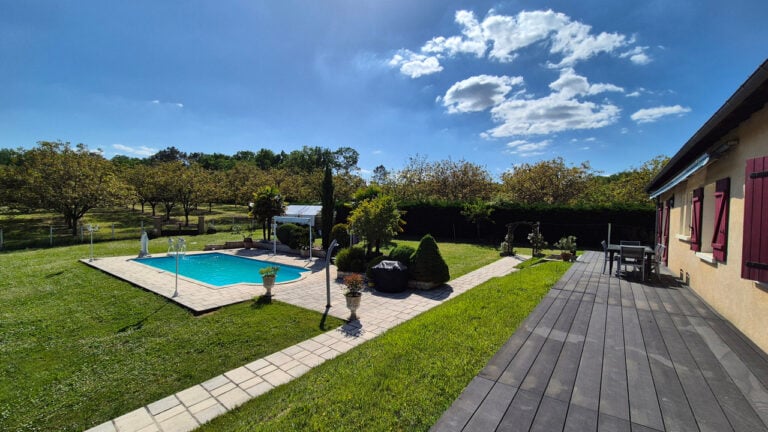 Een wenteltrap brengt je naar nog twee ruime slaapkamers boven. Buiten zorgen aangelegde tuinen, een moestuin en veel land voor privacy en rust, met ruimte voor een zwembad.
