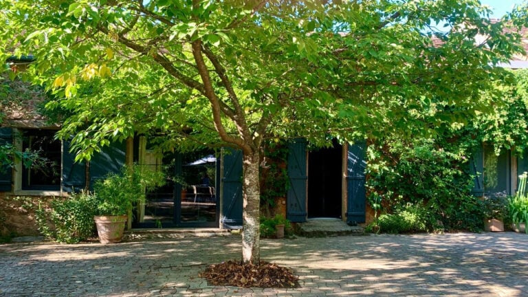 Het tweede pand bestaat uit een ontvangstkamer aan de voorkant met originele kasten en een open haard, die vervolgens leidt naar een ruime eetkamer met een prachtig keramisch houtvuur. Via de hal kom je in de grote kithen die is uitgerust met kasten en groot genoeg is om een tafel en stoelen neer te zetten. Deze laatste 2 kamers kijken uit op de achtertuin die ook 2 kleine bijgebouwen en een waterput heeft. Via de trap kom je bij de 4 goed ingerichte slaapkamers, sommige met prachtig uitzicht over het landschap. Vanaf de overloop is er een trap naar de grote zolder. Er zit een grote schuur aan het huis vast, met toegang vanuit de eetkamer. Beide woningen hebben dubbele beglazing. Het huis wordt gecompleteerd door verdere bijgebouwen van verschillende grootte, nog een schuur en een garage. Dit alles staat op een perceel van 2,8 hectare met toegang tot de rivier. Een ideale drinkplaats voor paarden!