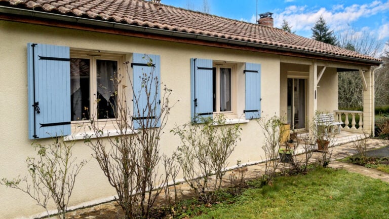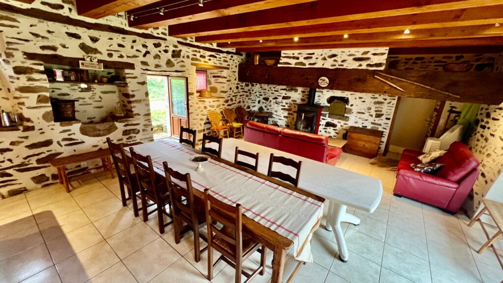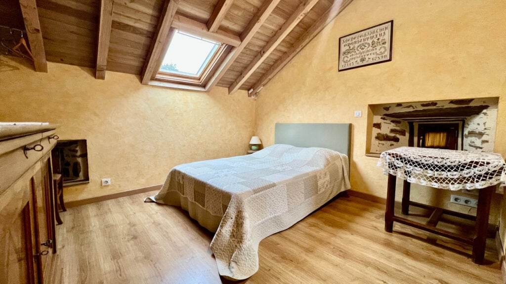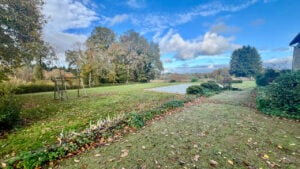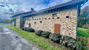 A25701ARO87 –: Deze woning ligt in een prachtige groene en rustige omgeving en biedt volledige privacy. Een charmant terras kijkt uit over het glooiende landschap en een rustig weggetje leidt naar een klein gehucht met slechts een paar huizen. De volledig omheinde tuin van 3000 m², bezaaid met volgroeide bomen, draagt bij aan het gevoel van rust.