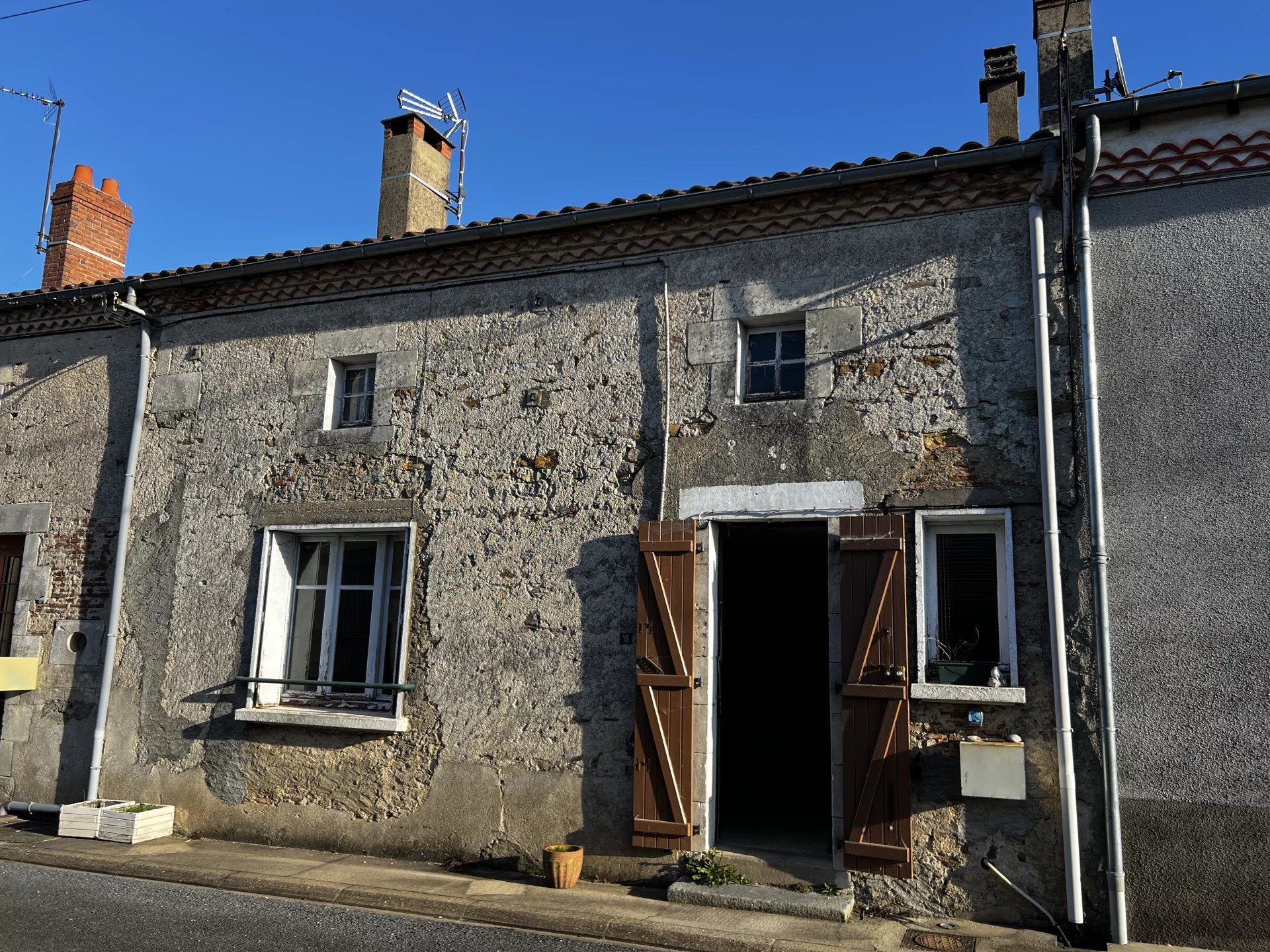 Buiten is er een kleine binnenplaats aan de achterkant, een tuin tegenover het huis en een schuur, waarvan het dak vervangen moet worden.