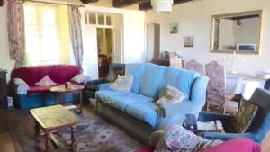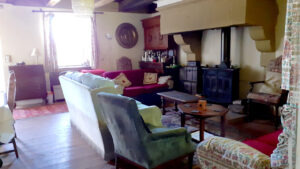 Je komt binnen in een ruime woonkamer met een originele open haard en houtkachel, ideaal voor gezellige winteravonden. Hiernaast vind je de landelijke keuken met nog een houtkachel en genoeg ruimte voor een eettafel met directe toegang tot de achtertuin.