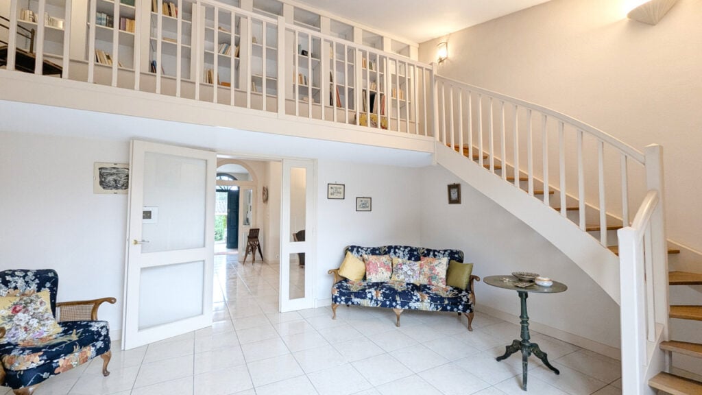 A39421SOM81 –: Neem een kijkje in dit ongewone huis, ontworpen door een architect voor luchtige woonruimtes en het gemak van drie slaapkamers met eigen badkamer. Een tweede woonkamer met mezzanine bibliotheek biedt extra ruimte om je eigen plekje te vinden. De wijnkelder (helaas zonder flessen) is een handige toevoeging, net als het kantoor en de twee garages.