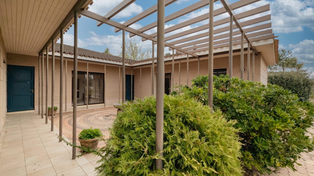 Het zwembad, met poolhouse en loggia, biedt een uitstekende ruimte voor het buitenleven. Een grote patio, aan drie kanten beschermd door de vleugels van het huis, gecombineerd met de brede veranda’s aan de drie buitenzijden, betekent dat je altijd de keuze hebt voor de beste plek om optimaal van het weer te genieten.